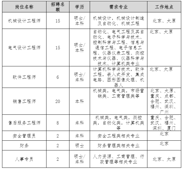 因业务需要,北京总部、太原分公司及重庆、合肥、武汉、福州、深圳等各办事处诚招技术、管理人才。诚邀各方英才的加入,与公司共同成长、共享辉煌!