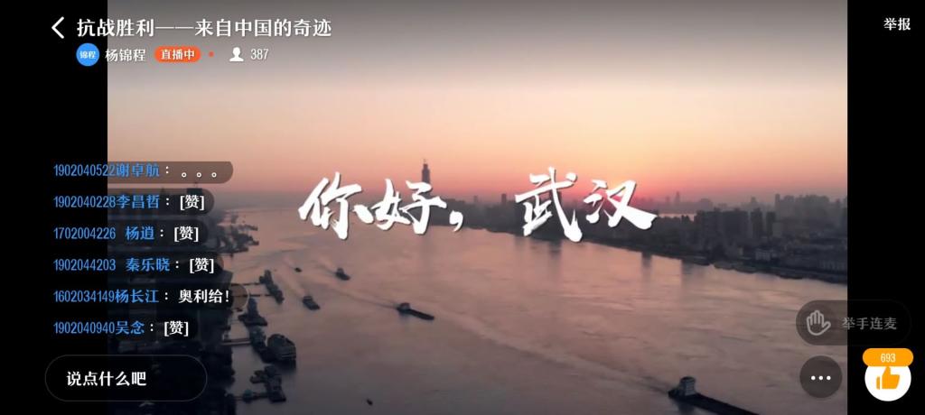 2020年5月5日下午3时,由机械工程学院团委分科协主办的第三期致学讲堂顺利进行。此次讲堂采用钉钉线上直播的方式,由车王杰同学和杨锦程同学担任主讲人,他们分别围绕“感动中国十大人物其美多吉”和“抗战——来自中国的胜利”这两大主题为大家进行了详细而生动的讲述。共计388名同学参与并认真聆听。