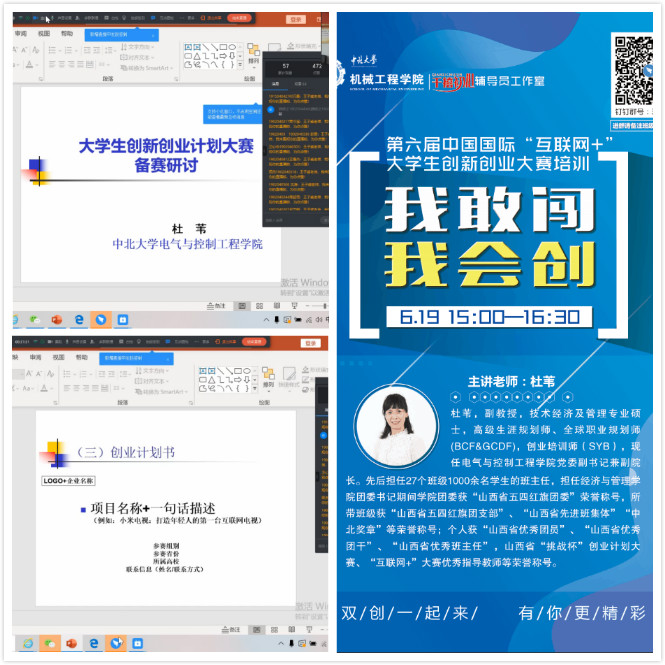 为推进第六届中国国际“互联网+”大学生创新创业大赛顺利开展,增强参赛队伍对本次大赛的理解与认识,并激发大家对科创的热情。2020年6月19日下午3时,机械工程学院举办的“互联网+”大赛赛前培训顺利举行。此次培训采用钉钉线上直播的方式,由杜苇老师主讲,分别从相关赛事简介和备赛要素两个方面为大家进行了详细的讲述。共计八十余名同学参与并认真聆听。