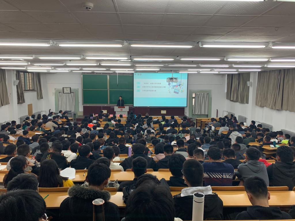 宣讲会开始之后,各赛事负责教师分别从赛事背景,赛事时间,比赛赛制,所需技能等多方面进行宣讲。现场听讲的同学被各赛事负责老师充满激情的讲解所深深吸引,在展示历年获奖作品的的环节现场同学不由地热烈鼓掌,整个宣讲会现场气氛热烈效果良好。宣传过程中各位老师积极鼓励同学们尽早参与到各级各类的学科竞赛中,通过参与比赛巩固所学知识,提升专业素养,培养综合能力。