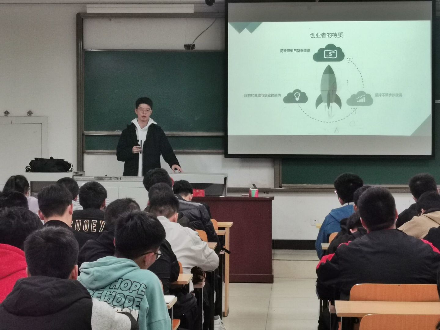 培训开始,赵文韬同学以简洁的语言讲述创新创业所需要的条件,并使用通俗易懂的例子来介绍创业比赛对学生未来各个方面的好处 ,接着以个人经历为与会成员提供参考,传授宝贵经验。着重强调好的合作伙伴与权威指导老师的重要性,积极鼓励学生与志同道合的同学参加各种创新创业比赛。最后告诫大家一定要以一颗平常心来面对成功与失败,通过各种竞赛提升个人专业知识,培养个人综合素质。在大家的热烈掌声中,本次培训会圆满结束。