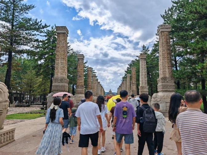 7月13日,实践团队来到了著名的云冈石窟。云冈石窟始建于公元5世纪,距今已有1500多年的历史。云冈石窟依山开凿,共有窟龛45个,造像51000余尊,实践团亲地欣赏石窟的壮美,体会中国石窟文化的魅力。实践团成员感叹于石窟雕塑的精美,每个石窟的动作和神态都栩栩如生,似真人一般。同时,石窟的彩色技艺也吸引着实践团成员的目光,彩色技艺与飞天的神话相结合,使得飞天这一佛教更为生动的被人观赏与学习。在参观中实践团成员也发现由于大自然的风化的影响使一些石窟的面部被损坏,看不清其原来的真实面貌,有一些石窟甚至被风化的不复存在。除了自然的风化外,人为对它的损害也不容小觑,人为在石窟上进行雕刻、绘画的行为对石窟的损害也较为严重,使石窟散失了它的原貌,导致了文物的毁坏。