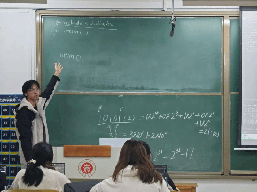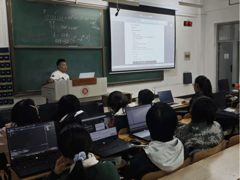 培训过程中,李欣阳同学作为主讲人,系统讲解了C语言的基本语法、符号含义及输入输出等核心内容,并通过实例演示引导同学们逐步掌握函数编程方法。田一鸣同学协助进行现场指导,及时为同学们解答疑惑。两位负责人密切配合,通过理论讲解与实操练习相结合的方式,让参与同学在动手实践中深化对C语言的理解。整场培训学习氛围浓厚,互动交流频繁。
