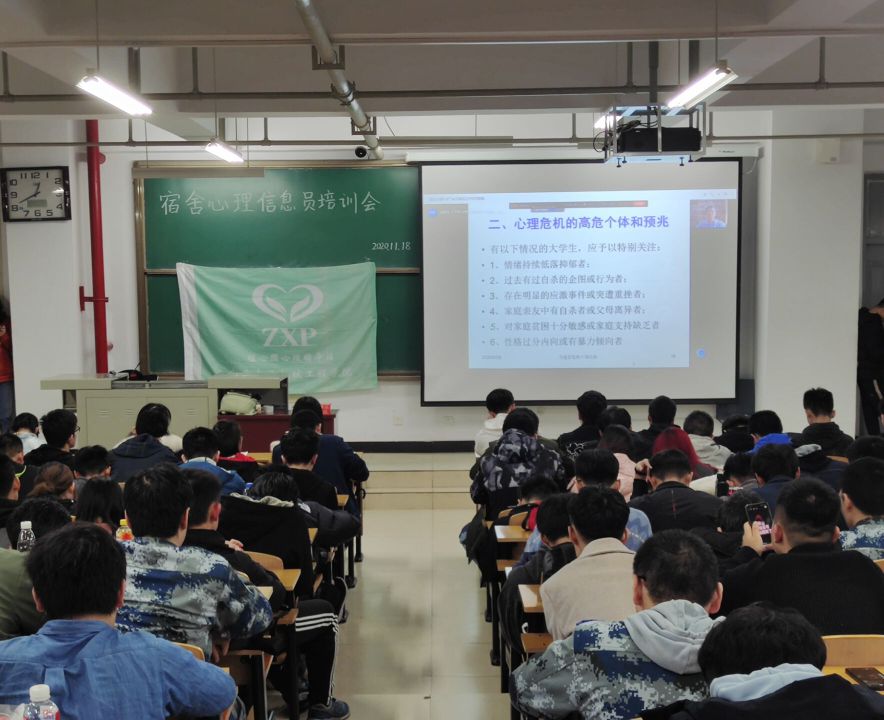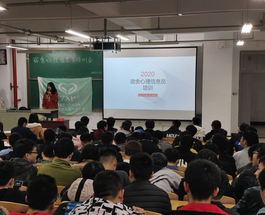 2020年11月18、19日中午,机械工程学院植心圃心理辅导站于15号楼101、106教室分别对各年级宿舍、班级心理联络员进行培训。出席本次活动的有植心圃心理辅导站指导老师李宗霖老师、站长杨迪、各部部长以及各级班级、宿舍心理联络员。应学校要求,为实现我校心理健康教育工作从学校―学院―班级三级结构到学校―学院―班级―宿舍四级结构模式的转变,我院任命宿舍长担任宿舍心理信息员,并定期组织所有班级和宿舍心理联络员进行培训。