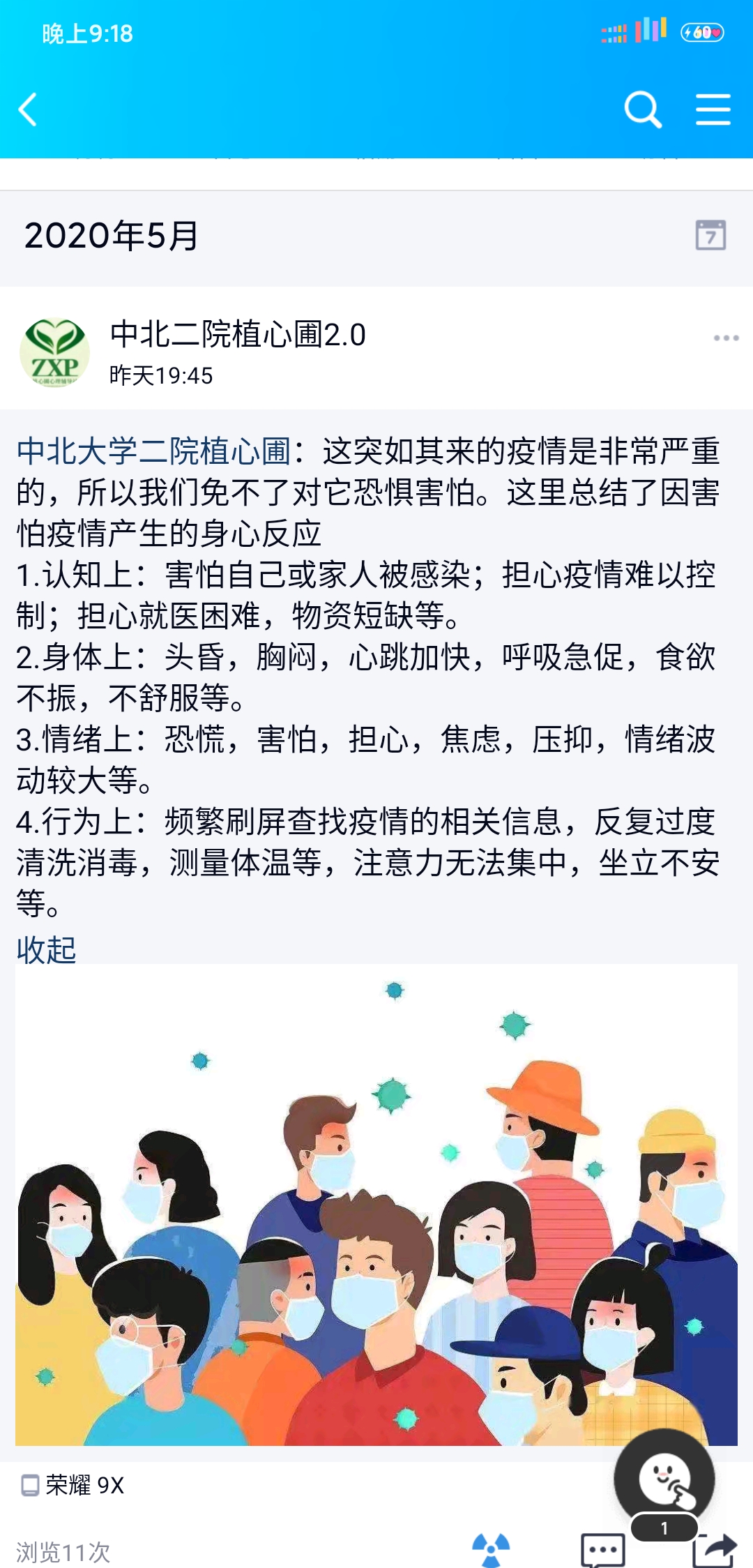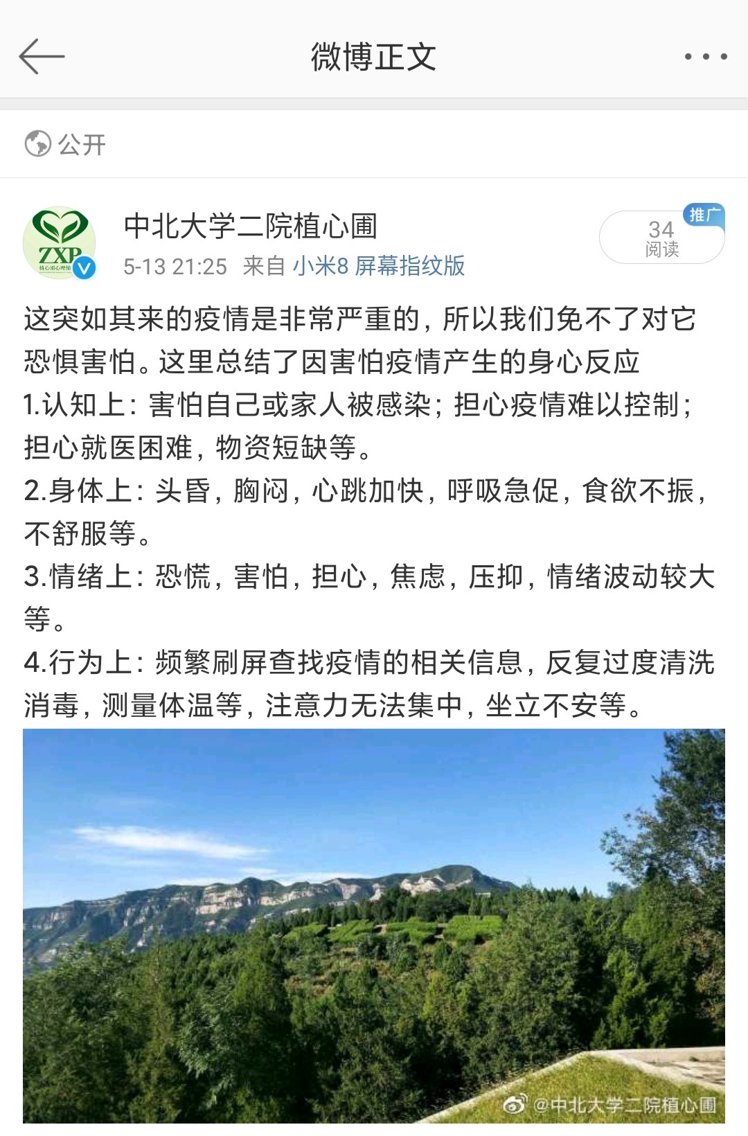 为维护学生心理健康、增强学生心理素质、解决学生心理问题,并结合本学期的特殊情况,机械工程学院植心圃心理辅导站于2020年5月6日-2020年5月13日组织全院学生参加以“珍爱生命,抗议加油”为主题的线上心理科普活动。