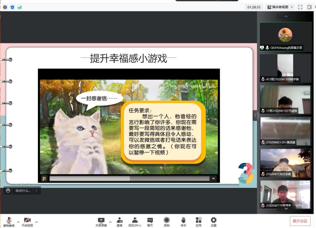 此次“心遇新旅,力逐美好”主题讲座,旨在帮助在校封闭式管理和居家未返校的同学缓解心理压力,保持一个良好心态,积极面对之后的学习生活,了解生命健康教育的重要性和必要性,积极进行生命管理,最终实现生命价值。