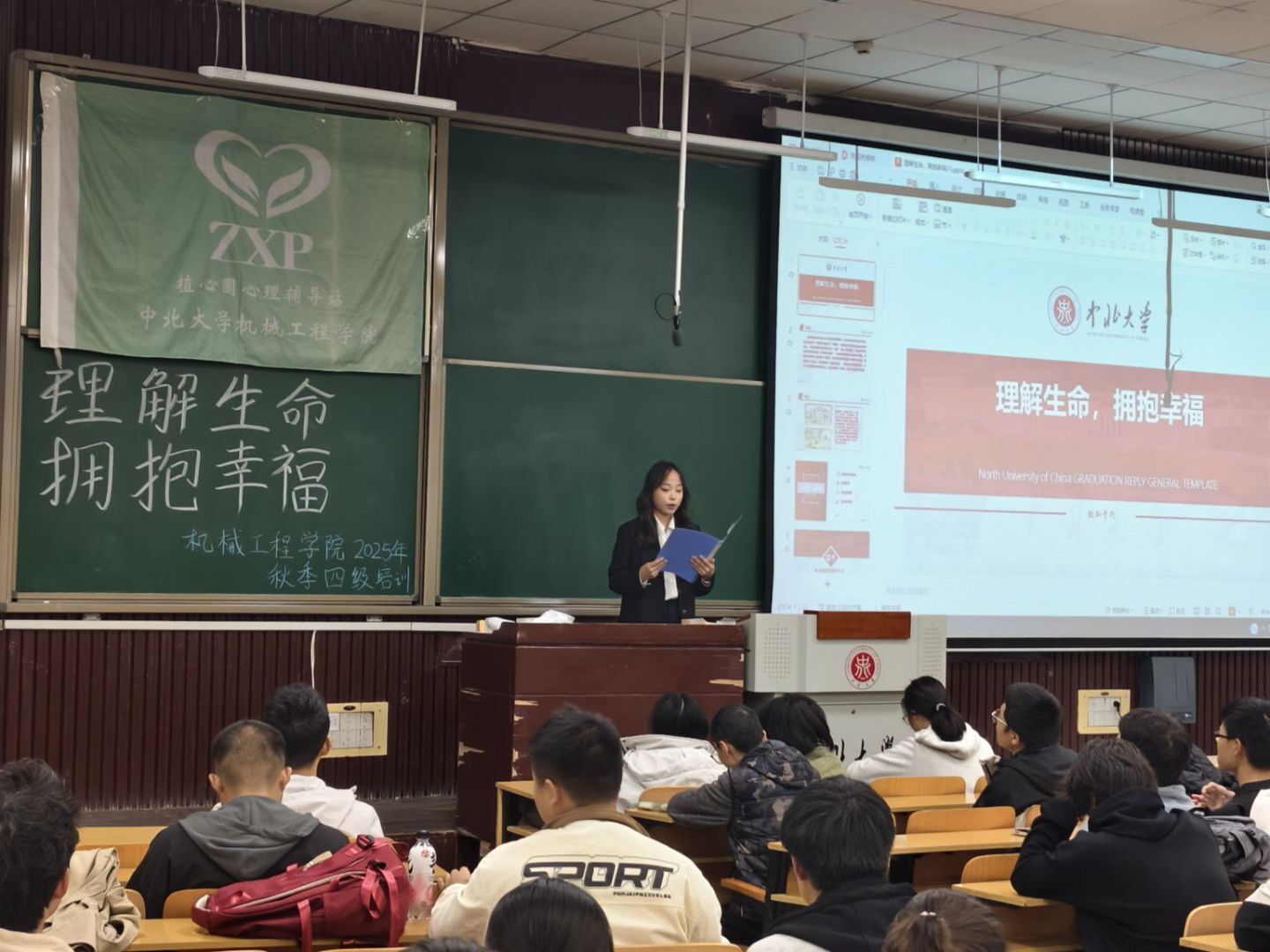 为健全新生心理四级预防体系,筑牢学生心理安全防线,提升2025级本硕博各宿舍长心理健康管理服务能力。2025年10月28日下午四点,机械工程学院植心圃心理辅导站于07103教室举办以“理解生命,拥抱幸福”为主题的秋季心理四级培训,邀请能源与动力工程学院团委书记李晓彧老师为主讲嘉宾,学院25级全体新生心理委员及宿舍长参会。