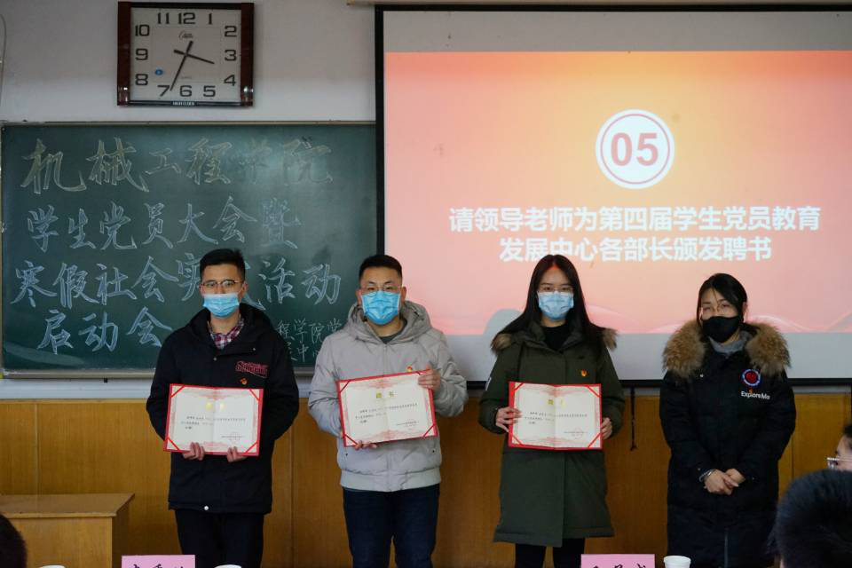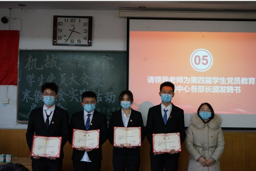 为响应国家疫情防控措施,此次党员大会采取线上与线下结合的形式召开,参会人员全程佩戴口罩。会议在庄严的国际歌声中拉开了序幕。会议伊始,第三届党员教育发展中心常务副主任岳宇卫、米文博同志进行了年度学生党员教育发展中心工作总结,从不同的方面对本年度工作进行了详细汇报。苗慧老师宣读了关于第四届学生党员教育发展中心各部长聘任的决定,并为第四届学生党员教育发展中心各部长颁发了聘书。第四届学生党员教育发展中心常务副主任郑国拄、郝宇聪在发言中表示将继续发扬机械工程学院党建办公室的优良作风,在未来一年再接再厉。