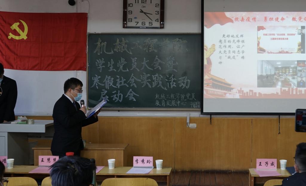 2021年1月11日下午3:00,机械工程学院学生党员大会暨寒假社会实践活动启动会于04203教室顺利召开。院党委副书记李秀玲老师、及全体辅导员老师出席了此次会议,机械工程学院全体学生党员参加了此次会议。