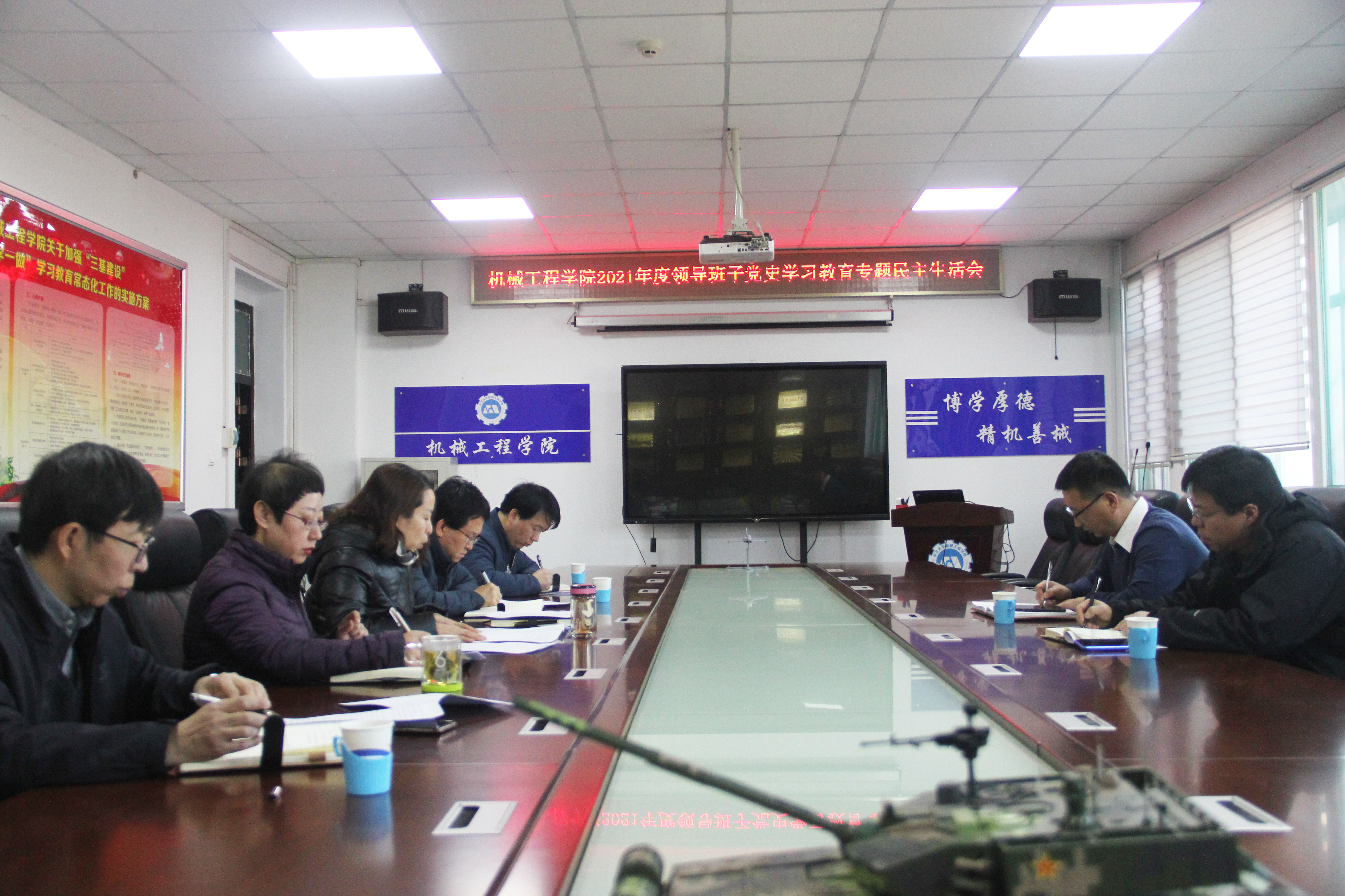 根据学校党委《关于开好2021年度党史学习教育专题民主生活会的通知》要求,结合学院实际,2022年1月11日上午,机械工程学院紧扣“大力弘扬伟大建党精神,坚持和发展党的百年奋斗历史经验,坚定历史自信,践行时代使命,厚植为民情怀,勇于担当作为,团结带领人民群众走好新时代的赶考之路”这一主题,在德怀楼410会议室召开了领导班子2021年度党史学习教育专题民主生活会,副校长蔡江辉同志和校纪委联系委员、化学工程与技术学院党委书记廖海洪同志莅临指导,学院科研副院长苗鸿宾列席会议。会议由学院党委书记张清同志主持。
