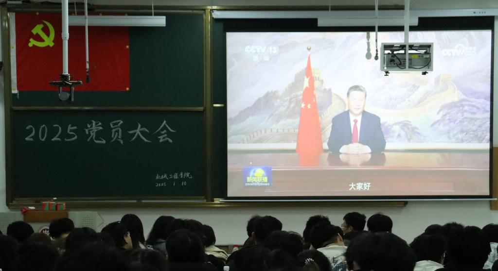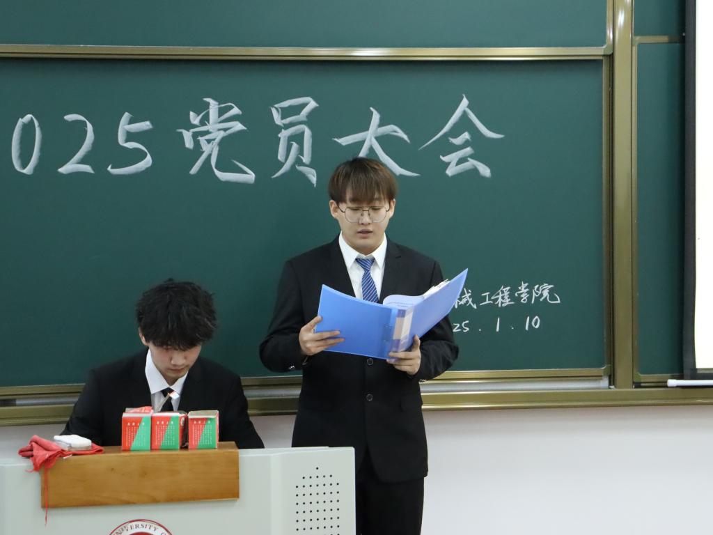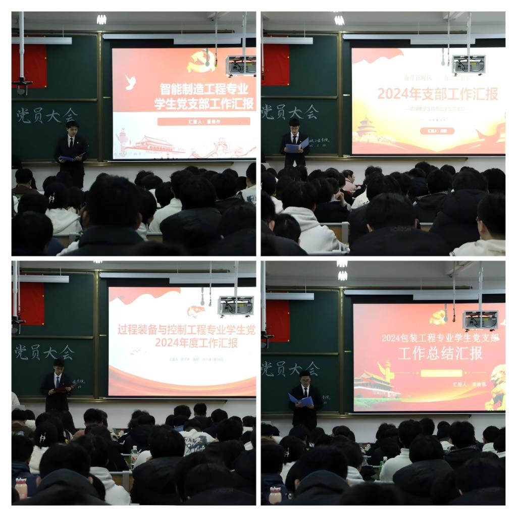 大会在激昂的《国际歌》中拉开帷幕,大会第一项为各本科生党支部就2024年基层党支部党建工作开展情况向大会作报告,各支部围绕本年度贯彻执行党组织决策部署情况、加强支部和党员队伍建设、完成基层党建任务、联系服务师生情况及存在的问题与改进思路等方面向大会报告。工作汇报环节后,全体参会人员学习了《国家主席习近平发表二〇二五年新年贺词》。