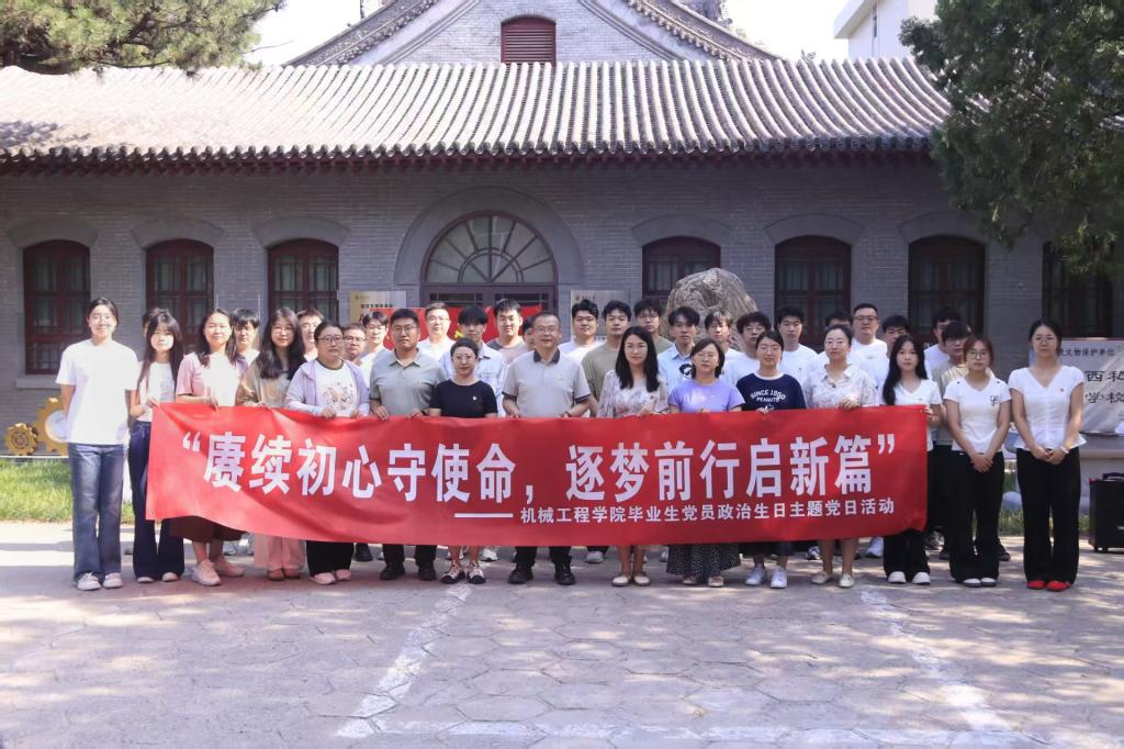 为增强毕业生党员的身份意识、责任意识和宗旨意识,激励大家传承红色基因、担当时代使命,2025年6月13日,机械工程学院在校史馆前举行“赓续初心守使命,逐梦前行启新篇”毕业生党员政治生日主题党日活动。学院党委书记孙旭东、党委副书记李秀玲出席,全体支部书记及毕业生党员代表参加,活动由学院党建工作负责老师李唯主持。