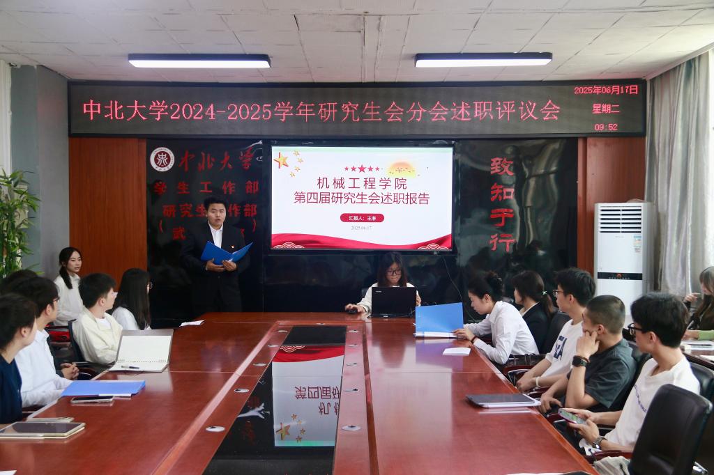 2025年6月17日,中北大学2024-2025学年研究生会分会述职评议会在德怀楼211会议室顺利举行,评议会通报了中北大学“先进研究生分会”评选情况。第四届研究生会主席王淋同学代表机械工程学院进行了述职报告,学院荣获“先进研究生分会”称号。