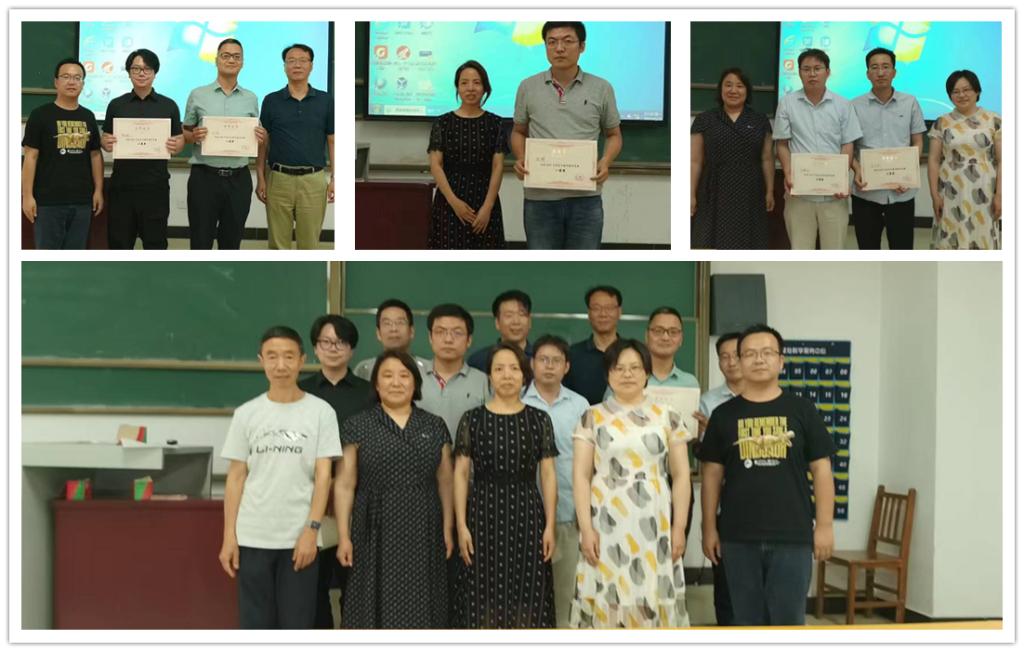 最后,评审专家对获奖的教师进行了颁奖并合影留念,学院教指委主任张吉堂教授对参赛教师表示祝贺,同时他指出本次参赛教师整体讲课水平较高,但是距离教学竞赛要求还有一定的差距,在教案设计、PPT制作、课堂把控方面还有一定的差距, 希望大家接下来可以多向获过省级比赛奖的乔峰丽老师、赵鹏飞老师学习,积极准备参加学校的比赛。