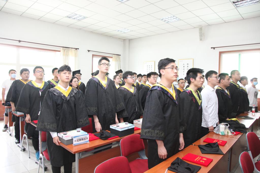毕业典礼第二部分为拟学位授予仪式,由辛志杰老师宣读关于拟授予2020届毕业生李宇婷等738名同学学士学位的决定,毕业生代表走上前台,接受老师们为其送上最诚挚的毕业祝福并合影留念。毕业典礼在全场合唱中北大学校歌《再铸辉煌》中结束。