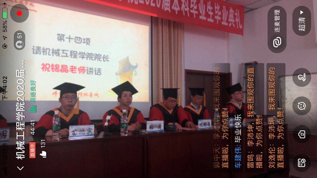 青衿之志,履践致远。2020年的半夏时分,机械工程学院本科毕业生迎来了一个特殊的毕业季。基于新冠病毒疫情呈现常态化,本次毕业典礼同时在线上与线下展开,5月 23日下午3点,机械工程学院于科艺苑西侧学术报告厅举行2020届本科毕业生毕业典礼,院党委书记张清,院长祝锡晶,副院长苗鸿宾,中北大学学术委员会辛志杰教授与李瑞琴教授出席本次毕业典礼。教师代表、班主任代表、全体辅导员老师以及部分毕业生代表到现场参会,毕业典礼同步在二院16级本科毕业生钉钉群直播,典礼由副院长曾志强主持。