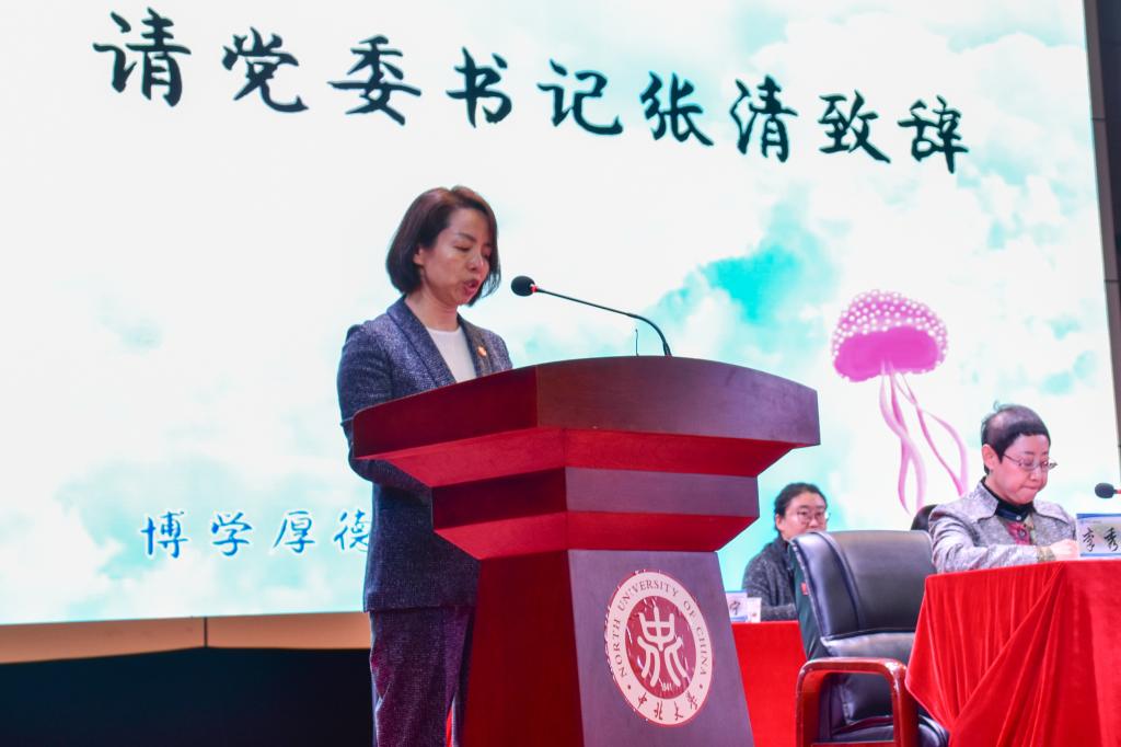 在激昂的国歌声中,开学典礼正式开始。院党委书记张清献上致辞,张书记对2020级新生的“姗姗来迟”表示热烈的欢迎,她表示,新生们的到来印证了中国抗击疫情取得的伟大胜利,也足以为各位注入信心,在未来的日子肩负复兴重任,祖国共频共振。张书记还表示,明年适逢学校80周年校庆,拥有悠久历史的中北校园,将为各位提供展示自己的舞台,希望全体机械学子传承太行精神,共同谱写崭新篇章。
