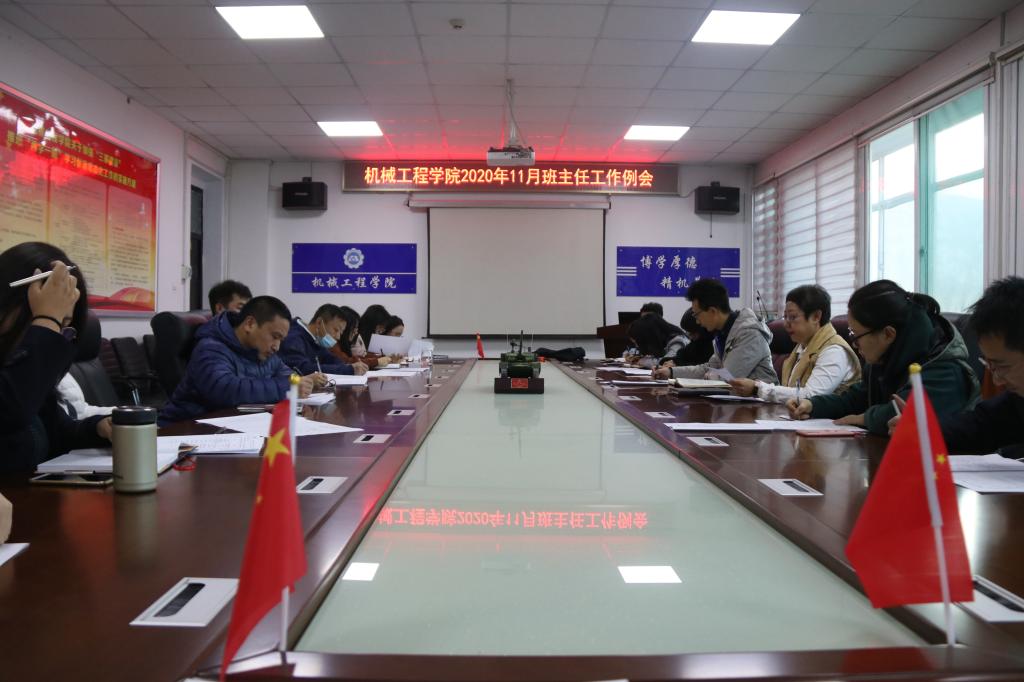 为了对过去一段时间特别是新生开学后的学生教育管理工作进行总结,同时部署下一阶段的工作任务目标与工作要点。机械工程学院于2020年11月3日下午4时在德怀楼410会议室召开11月班主任工作例会,全体班主任老师与辅导员老师参会,会议由院党委副书记李秀玲老师主持。