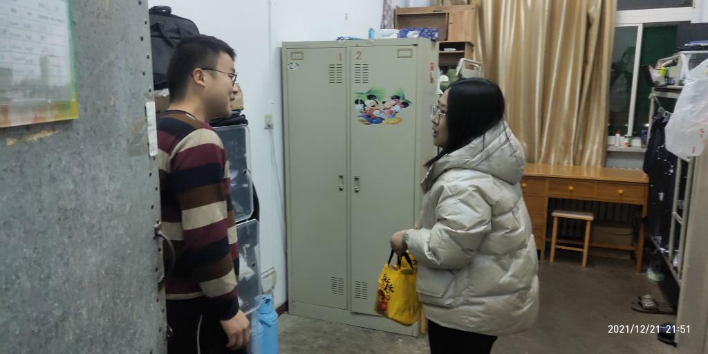 毕业班班主任与学生组织负责老师深入学生宿舍为考研同学加油鼓劲,帮同学们舒缓压力,有的同学表示,已经来到了最后一步,有信心有决心战胜即将面对的一切困难,给自己一个交代。