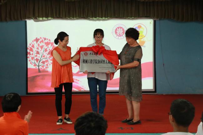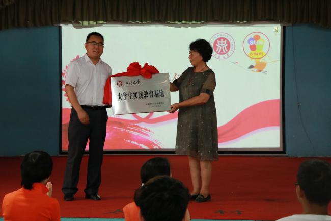 7月16日,带着全校师生对实践队师生的关爱,中北大学校团委书记李俊华老师、机械工程学院党委负责人张清老师、机械工程学院学生工作负责人李秀玲老师等前往北京太阳村看望慰问实践队师生并在太阳村隆重举行“中北大学大学生实践教育基地”“中北大学机械工程学院协同育人基地”揭牌仪式。