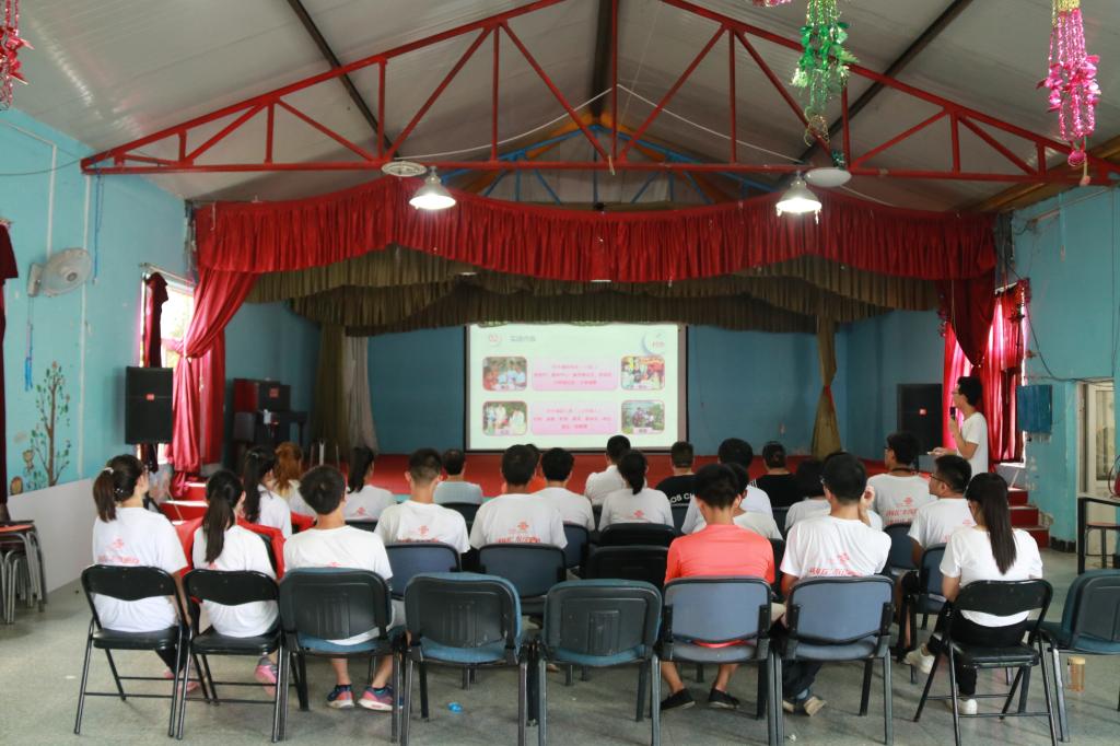7月16日中午,在实践队带队老师及太阳村工作人员的陪同下,三位领导首先深入实践队员宿舍了解学生日常生活起居情况,在太阳村工作人员的陪同观看太阳村纪录片了解太阳村发展历史。之后带队老师王子威汇报了自2016年以来我院学子在太阳村社会实践取得的成绩和未来发展计划,随后各位领导、太阳村工作人员、爱心企业代表与实践队员召开座谈会,就同学们分享的实践心得感悟、企业的社会责任、大学人才培养的道德素养进行了深入交流。期间,张清老师就实践队员们在太阳村的成长历练表示肯定,也对他们提出殷切的希望。随后一行领导举行了捐赠揭牌仪式。