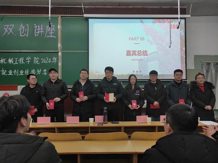 12月22日下午15:00,我院在07201H教室举办主题为“机械工程学院2020年就业创业经验分享会”的双创讲座。本次讲座的主讲嘉宾邀请了郭佩剑在内的7位毕业生代表,院团委副书记苗慧老师出席,相关研究生参加了本次讲座。在大家的共同努力下,本次讲座顺利开展。