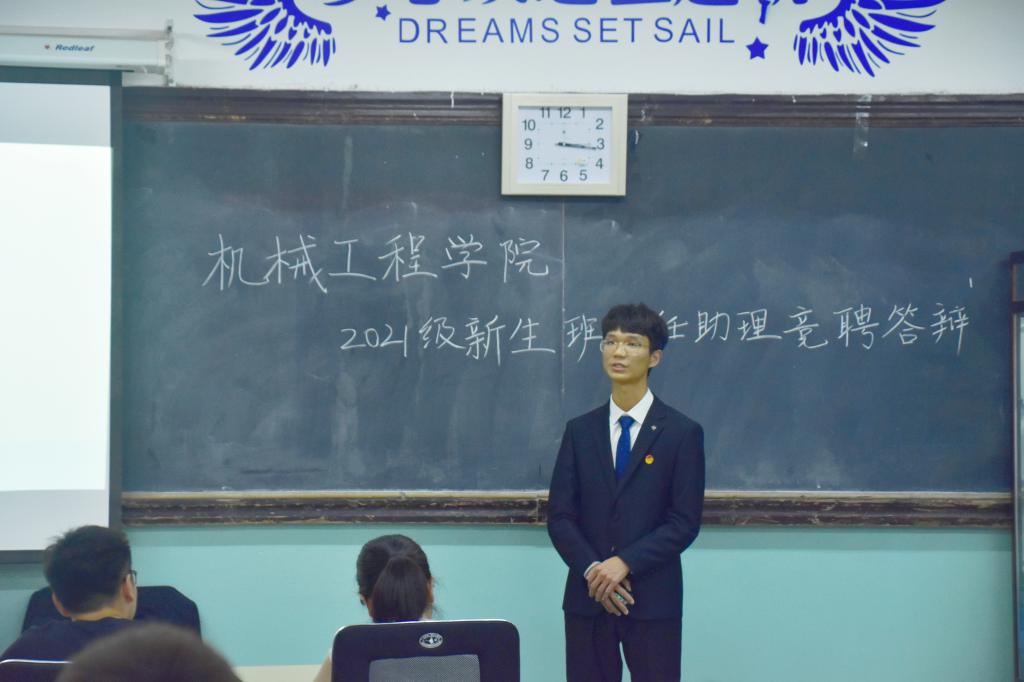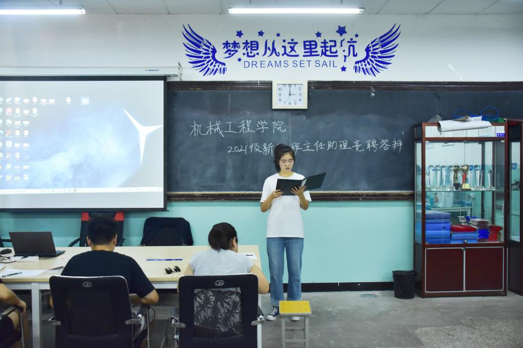 答辩开始,竞聘同学依次上台结合个人学习工作成绩、对班助工作的理解及工作计划和设想等方面展开表述。本次参加2021级新生班主任助理竞聘的同学,全部由即将升入三年级的学生骨干组成。他们有较高的思想政治素养以及较强的组织管理能力。经过两年的成长与沉淀,他们已对大学学习生活情况,机械相关专业的学习方法总结出一些经验与心得,可从学生层面协助班主任老师引领新生快速适应大学生活,尽早成长。