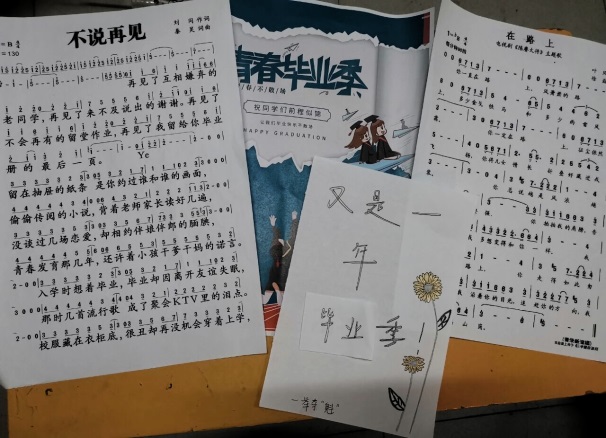 我部每一个人都用自己的方式表达了我们对学长学姐的不舍与崇敬。有人用图画,手抄报的形式绘出了学姐们对学长学姐的美好祝福;有的人找到毕业分别时该有的曲调,以此种形式留做纪念;有的人自编小诗,表达对学姐学长的无限的崇敬。