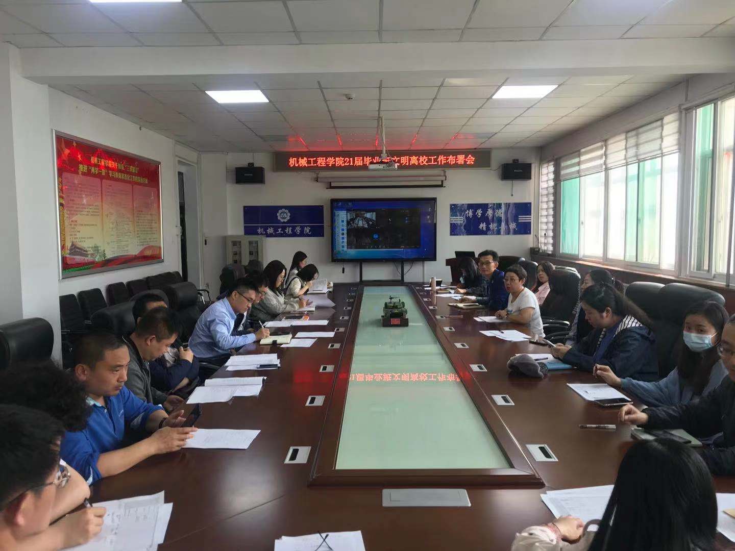 5月21日下午,机械工程学院2021届毕业生文明离校动员大会在学院会议室顺利召开。院党委副书记李秀玲,全体辅导员以及毕业生班主任参加了此次会议。