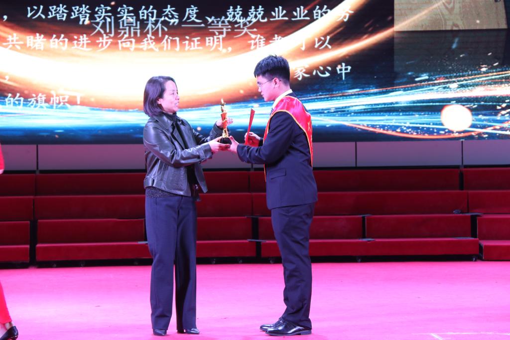 颁奖环节结束后,院党委书记张清做总结讲话,张书记首先向今天受到表彰的集体与个人表示衷心的祝贺,奖杯与奖状既是对过去一年学习工作努力付出的肯定,更是对未来一年赓续进步的激励。随后张书记希望同学们胸怀祖国,牢记本职,养成良好学习习惯,让学校真正成为一个研究学问、探索真理的理想之地。表彰大会最后,刘希伟同学带领全体参会学生宣誓,要努力做优良学风的倡导者和实践者。