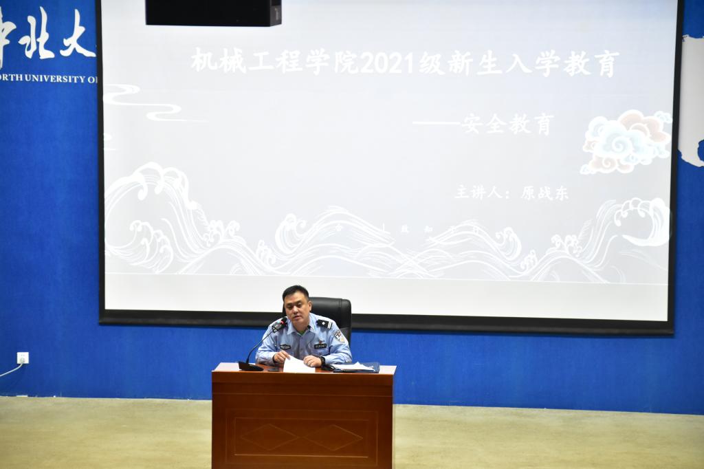 大会第三项,学院邀请到保卫处原战东警官为21级新生进行入学安全教育,原警官结合具体实例,将“安全第一”的思想传递给新生同学,特别是谨防电信诈骗,提升自我保护意识。