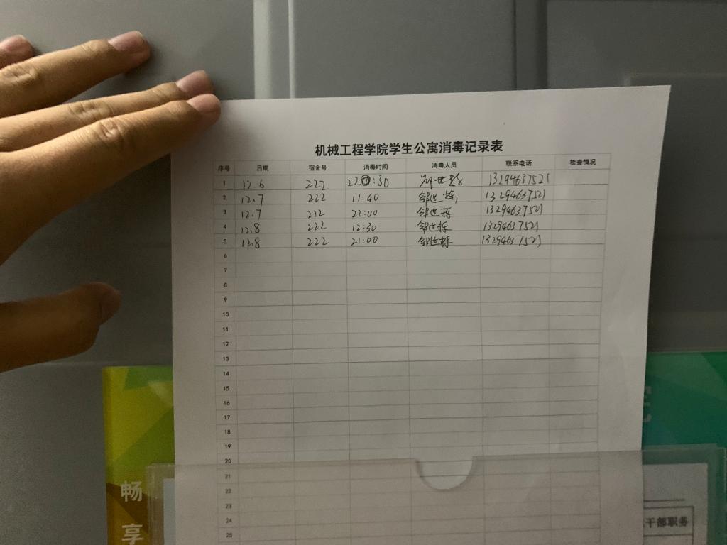 为有效预防传染病,培养同学们的良好的卫生习惯,创建干净卫生的宿舍环境,我院从12月起将进行本科宿舍每日两次消毒工作,并做好工作记录。
