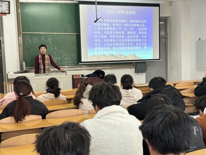 为深入学习贯彻习近平总书记关于安全生产重要论述和对山西省吕梁市离石区永聚煤业办公楼“11·16”重大火灾事故的重要指示精神。2023年12月8日早上9:50,23020441班在15104H举办了主题为“安全教育及传染病宣传”的主题班会。出席本次班会的为班主任王慧慧老师、校医院医教科张素英老师以及全体同学。