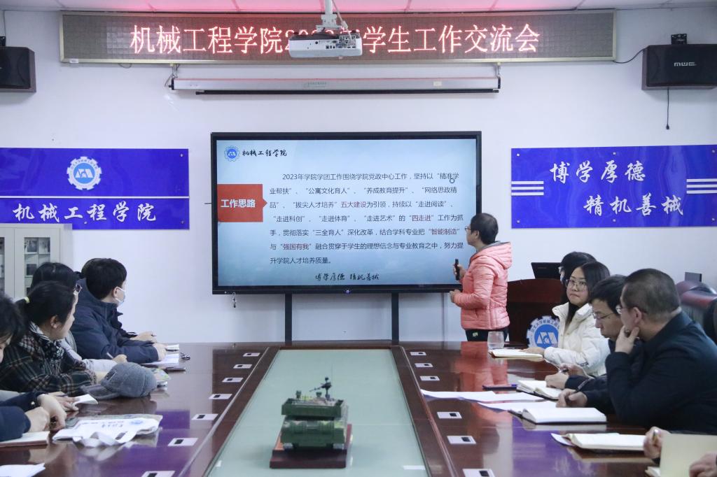 2023年12月26日下午,机械工程学院于德怀楼会议室举办2023年学生工作交流会。机械工程学院院党委书记孙旭东,副院长苗鸿宾出席交流会,学院青年教师代表参会,会议由学院党委副书记李秀玲主持。