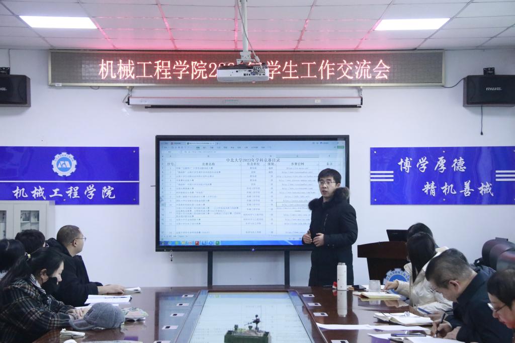 会议伊始,由学院党委副书记李秀玲对2023年学生工作进行通报。李老师表示,学院2023年学团工作深入贯彻落实“三全育人”深化改革,注重把学生教育管理与学科专业相结合,把“智能制造”与“强国有我”融合贯穿于学生的理想信念与专业教育之中,提升人才培养质量,为学院高质量发展做出贡献。李老师通报后,学院中北奖章申报班级及校长奖章候选人进行风采展示。随后,青年教师代表就如何开展好学院学生教育管理工作,提升人才培养质量轮流发言。老师们从学业成绩、科创能力、学科竞赛等方面对学生培养提出建议,指出专业老师要经常与辅导员老师沟通交流,要根据专业特点,结合军工背景与行业现状,提升学生的综合能力。会议最后学院党委书记孙旭东进行总结发言,孙书记对学院过去一年学生工作表示肯定,表示年末的工作交流会给老师们提供了一个交流工作心得,总结工作经验,研究育人规律的平台,希望老师们以工作交流为契机,深挖创新育人模式,让育人工作更有温度、人才培养更有高度、立德树人更有深度。