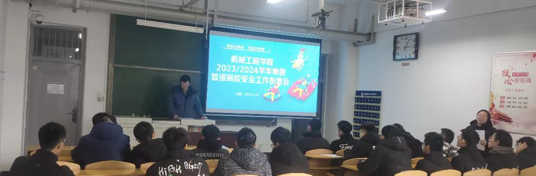 2024年1月18日下午3点,机械工程学院在15103教室召开2024年寒假暂缓离校同学安全教育大会。学生科科长王子威老师、公寓管理负责人王慧慧老师出席了此次会议。本次大会旨在提高暂缓离校学生的安全意识,加强对暂缓离校同学的安全教育及管理,预防各类安全事故的发生。