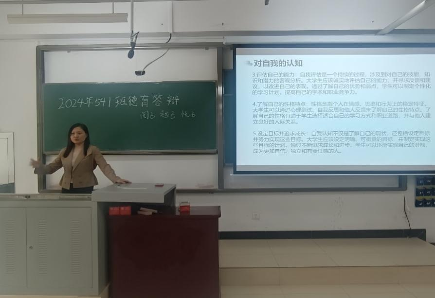 张继香老师对同学的答辩提出了点评与指导,她表示,大家要在大学四年里认真规划努力学习,取得令自己满意的结果。此次德育答辩活动取得了圆满成功,得到了师生们的一致好评。大家普遍认为,此次活动不仅提高了学生的德育素养,还为学生们提供了一个展示自己才华和观点的平台。同时,通过答辩的形式,学生们能够更好地理解和吸收德育知识,形成正确的道德观念和行为习惯。