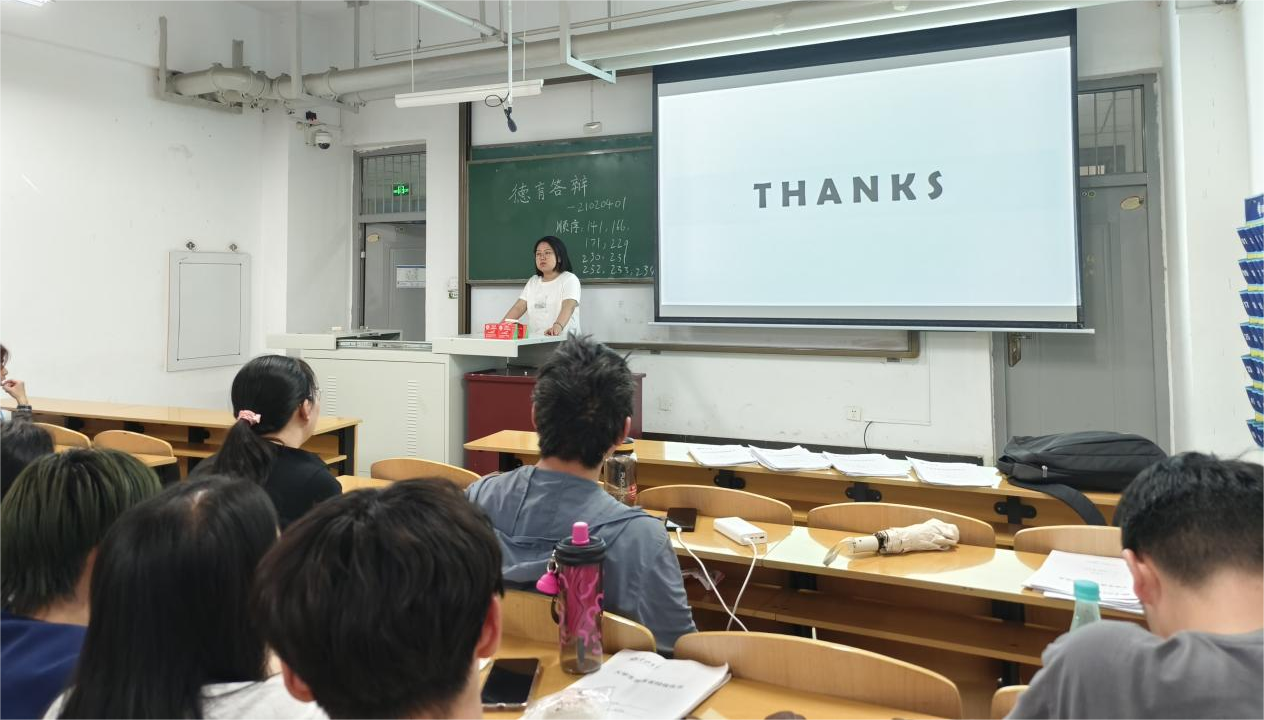 德育中期答辩开始后,同学们按照宿舍号依次登台,展示自己在德育方面的心得与成果。同学们结合日常生活中的小事、社会实践活动、学术诚信、团队协作等方面深入探讨德育在大学生活中的重要性。每位同学答辩结束后,王瑾老师都会给予细致入微的点评。她不仅肯定了同学们的努力与付出,更针对每个人的特点与不足,提出了宝贵的建议与期望。