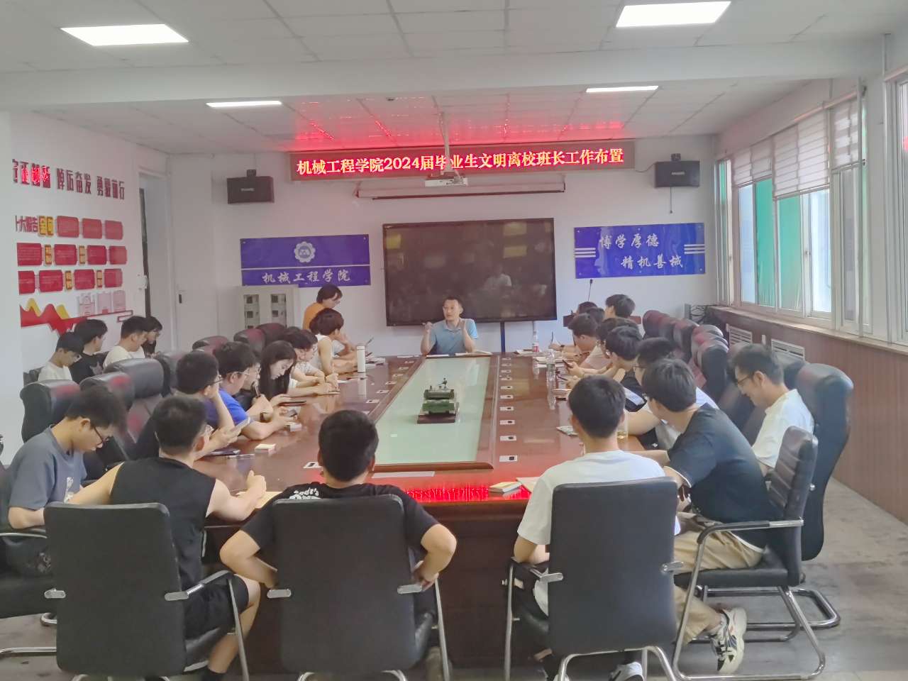 为切实做好2024届毕业生文明离校的工作,在毕业季提供温馨离校服务,营造安全、文明、和谐、有序的离校氛围,6月14日下午,学院在德怀楼会议室召开2024届毕业生文明离校工作班级工作布置会,各毕业班班长及就业负责人参加,全体辅导员出席,会议由学生科长王子威主持。