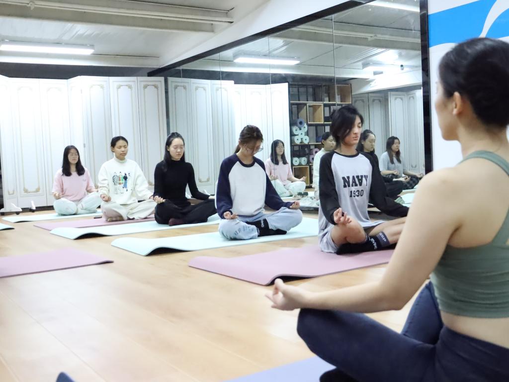 活动伊始,现场灯光柔和,营造出一种宁静舒适的氛围。杨柳学姐首先向同学们介绍了瑜伽对于女性身心健康的益处,包括增强身体柔韧性、调节心理压力等。随后,在舒缓的音乐声中,同学们在学姐的引导下,开始了瑜伽练习。从简单的呼吸法到基础的体式,每一个动作学姐都耐心讲解和示范,确保同学们动作的规范。无论是经验丰富的瑜伽爱好者,还是初次接触瑜伽的新手,都全神贯注地投入其中。在练习过程中,现场安静有序,同学们展现出了极高的热情和专注度,随着体式的转换,大家逐渐放松身心,感受着瑜伽带来的独特魅力。不少同学表示,在这个过程中,她们感受到了身体的舒展和内心的平静,仿佛将日常的烦恼都抛诸脑后。