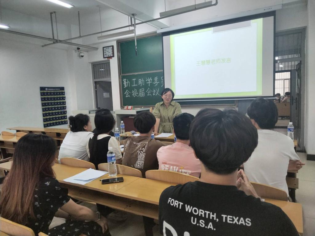 最后由王慧慧老师进行总结发言,王老师对现任各部门干部的工作给予高度肯定,并希望他们继续发扬不怕吃苦,冲锋在前的精神。王老师还对新一届学生干部提出工作要求,她希望大家对待工作要有责任心,做好学院与学生沟通的桥梁,并期待新一届干部能够传承勤工助学委员会的优良作风,继续努力,再创辉煌。