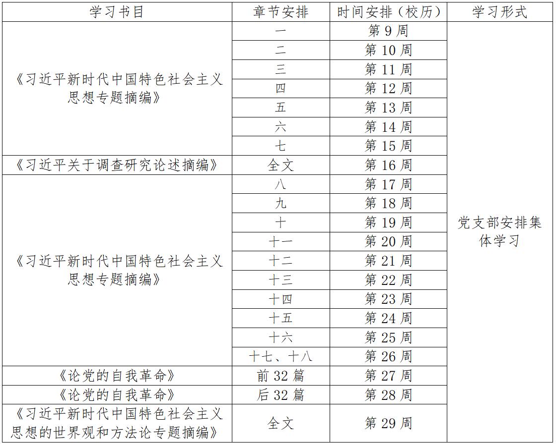学院领导班子及各党支部要结合实际情况开展学习,按照学院制定的学习计划结合“三会一课”、党日活动、学习交流分享会等形式落实学习内容。