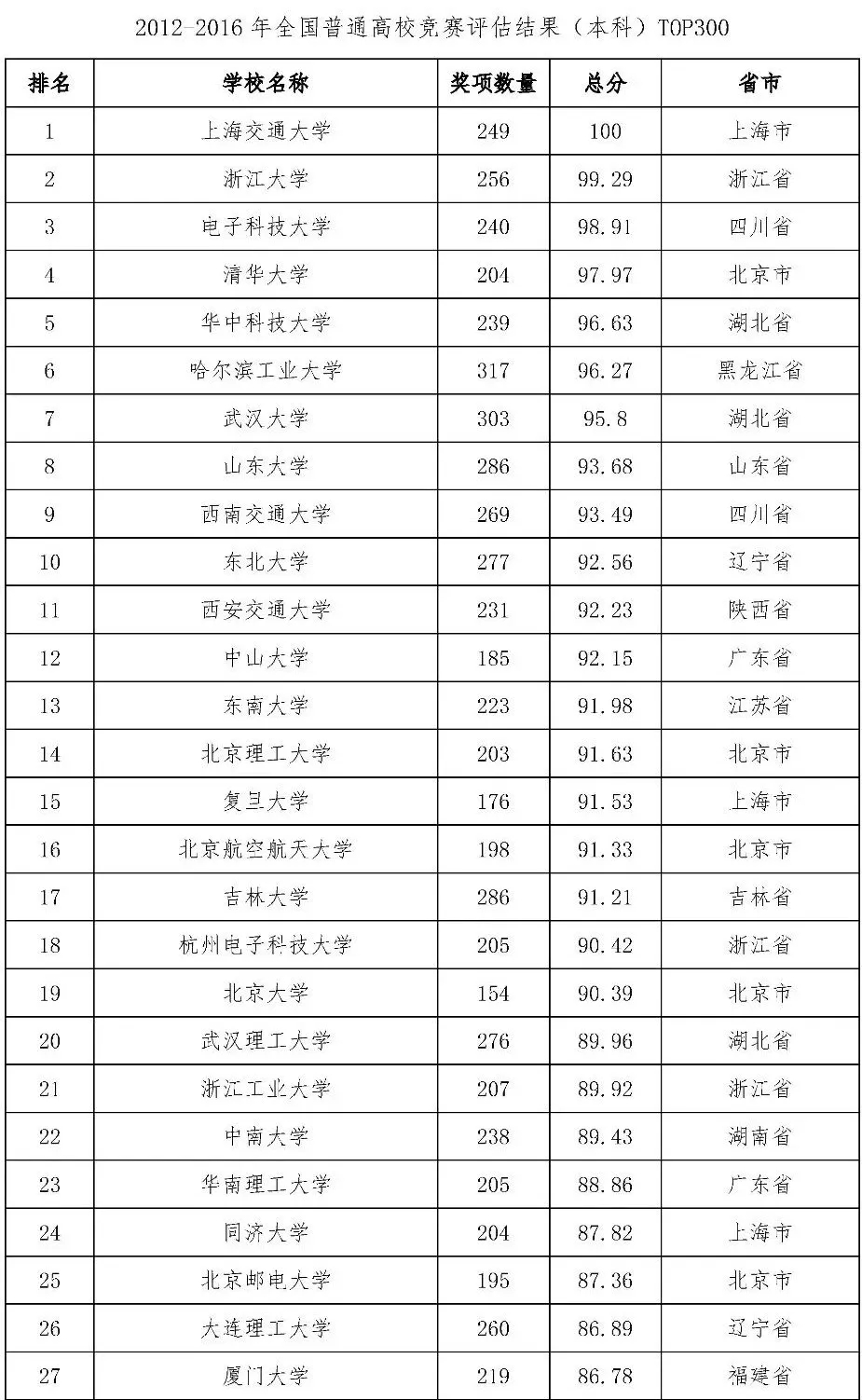(1)本科:2012-2016年全国普通高校竞赛评估结果(本科),预发布TOP300;2016年、2015年和2014年全国普通高校竞赛评估结果(本科),各预发布TOP100;