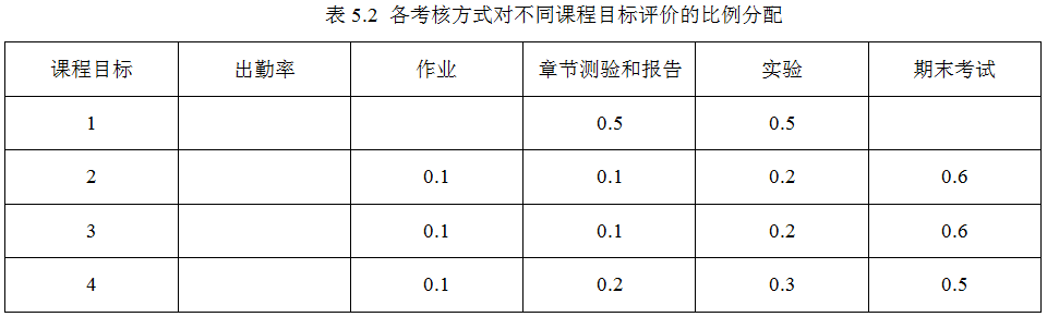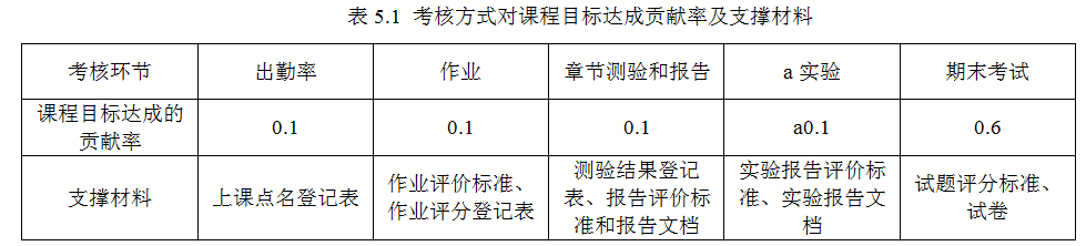 3. 考核方式及对课程目标达成、评价比例见表5.1和表5.2所示。