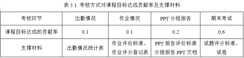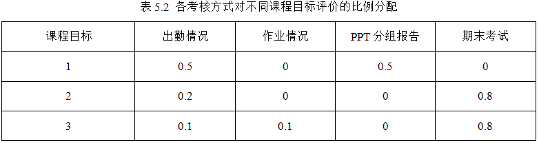 3. 考核方式及对课程目标达成、评价比例见表5.1和表5.2所示。