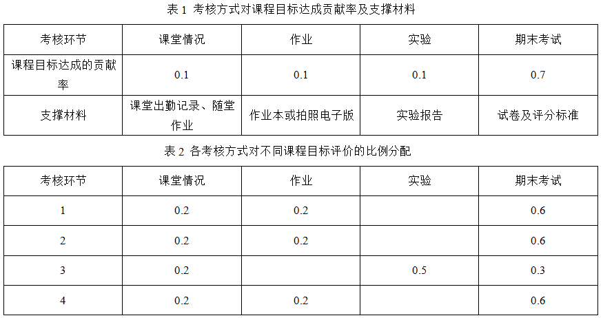 3.考核方式及对课程目标达成、评价比例见表1和表2所示。
