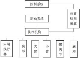 六自由度串联机械手主要包括底座、关节、大臂、小臂、腕部和末端执行器。驱动系统是驱动工业机械手执行机构运动的传动装置。它由动力装置、调节装置和辅助装置组成。常用的驱动系统有液压传动、气压传动、电力传动和机械传动四种形式。控制系统是机械手的指挥系统,它控制驱动系统,让执行机构按规定的要求进行工作,并检测其正确与否。目前工业机械手的控制系统一般由程序控制系统和电气定位(或机械挡块定位)系统组成。控制机械手执行机构的运动位置,并随时将执行机构的实际位置反馈给控制系统,并与设定的位置进行比较,然后通过控制系统进行调整,从而使执行机构以一定的精度达到设定位置。