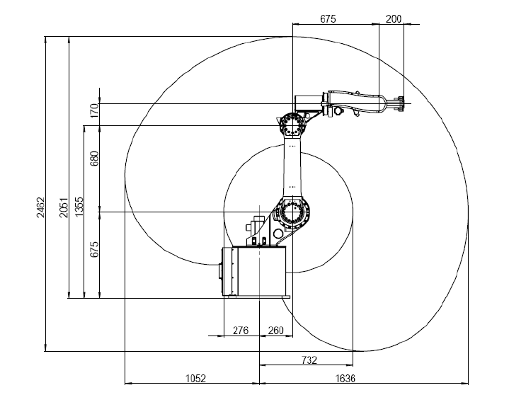 c. AIR16 ARC P本体运动范围。在安装外围设备及示教编程时应注意避免干涉。