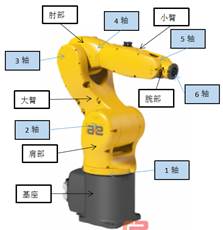 操作机,又称为本体,是指机器人系统中用来抓取或移动物体(工具或工件)的机械结构。AIR6X型工业机器人操作机为六自由度串联式工业机器人,包括三个摆动轴(2,3,5轴)和三个旋转轴(1,4,6轴)。本体主要包括机身安全标识、各轴方向标识、运动范围、轴限位、轴速度和标定。