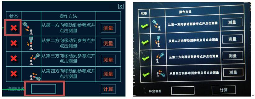 d. 绿色对勾表示成功,点击计算,得到标定误差,系统的标定误差可控制在0.2-0.4mm,因此,标定误差过大请重新标定。